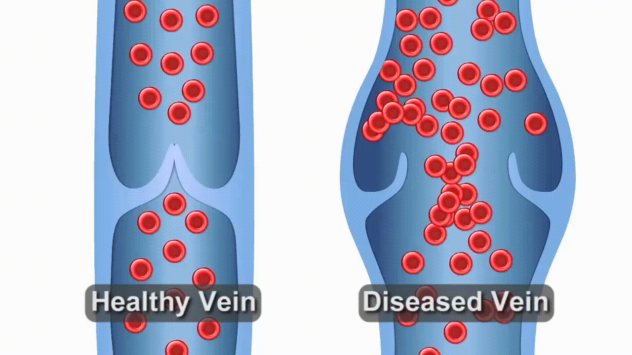 Blood is pushed back into the main circulation from the legs by the pumping action of the calf muscles over the leg veins. However, that alone is not enough to continuously achieve forward flow towards the heart. Normal veins have valves that keep the blood from moving backwards during the brief times the calf muscles are not being used. These valves may stop working properly for various reasons. As the calf muscles squeeze the blood forward, incompetent valves allow the blood to move backwards, resulting in pooling of blood in the lower legs. This is a medical condition referred to as venous insufficiency. Over time, the leg veins become dilated and twisted and do not control blood flow as they should. When the veins reach this state, they are referred to as varicose veins.